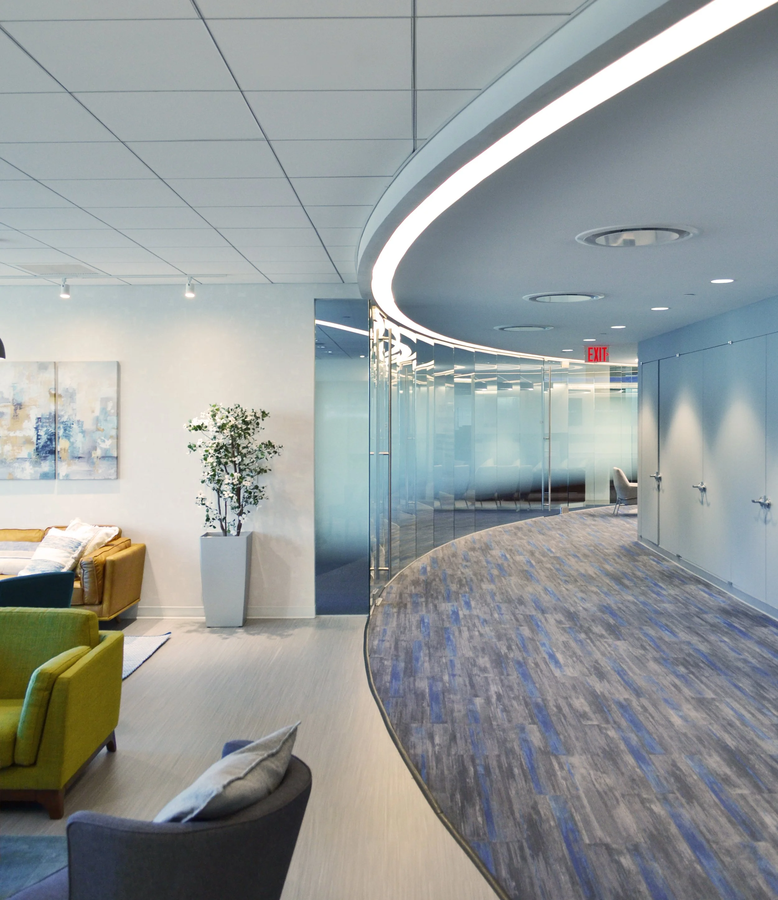 Comprised of several divisions, each of Tradeweb’s brands has developed its own identity that we have melded into their new reception, kitchen, and lounge. The exploration of colors and shapes makes for a fun and functional space.